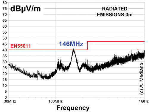 未能遵守原系統(tǒng)的規(guī)定(綠色痕跡)位于145兆赫左右。該產(chǎn)品的天線是主電源電纜(電纜的運(yùn)動(dòng)和一個(gè)大的環(huán)形鐵氧體來(lái)證實(shí)這一點(diǎn))。